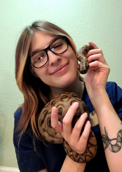 Hannah has grown up in Colorado surrounded by animals and has been passionate about them her entire life. Getting her first reptile in 2021, and her first rescue shortly after, she has since found that her true passion lies with reptiles and amphibians. She has worked several years in the food and retail industries gaining experience in customer service and management. She found Colorado Exotic Animal Hospital through her own rescued animals. She has spent numerous hours doing rescue and rehabilitation work with Reptile and Amphibian Center of The Rockies and Righteous Reptile Rescue.